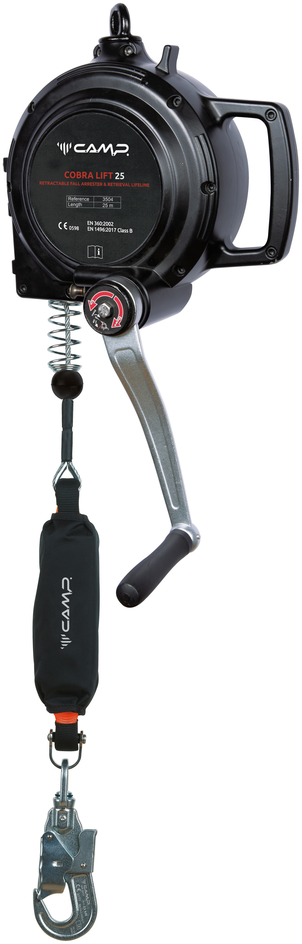 Használható hagyományos önbehúzó zuhanásgátlóként, a visszahúzó csörlő könnyen aktiválható a munkavállaló biztonságos kimentéséhez baleset esetén. Felszerelhető