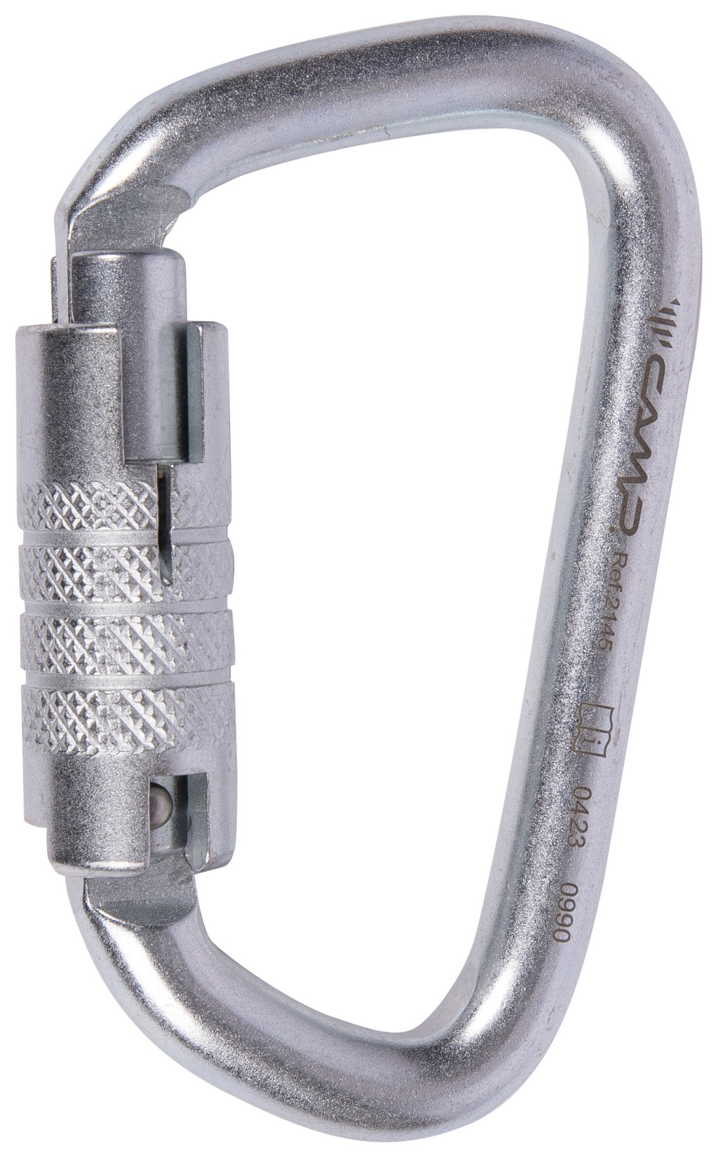Nagy szilárdságú acél karabiner. D alakjának köszönhetően különösen jól használható csomókhoz.