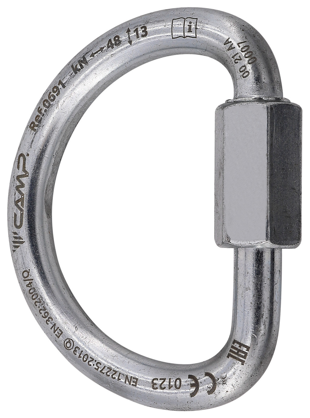 CE és UIAA tanúsítvánnyal rendelkező 10 mm-es acél D alakú gyorscsatlakozó kötélzethez és ipari munkákhoz. 17 mm-es villáskulcs szükséges hozzá.