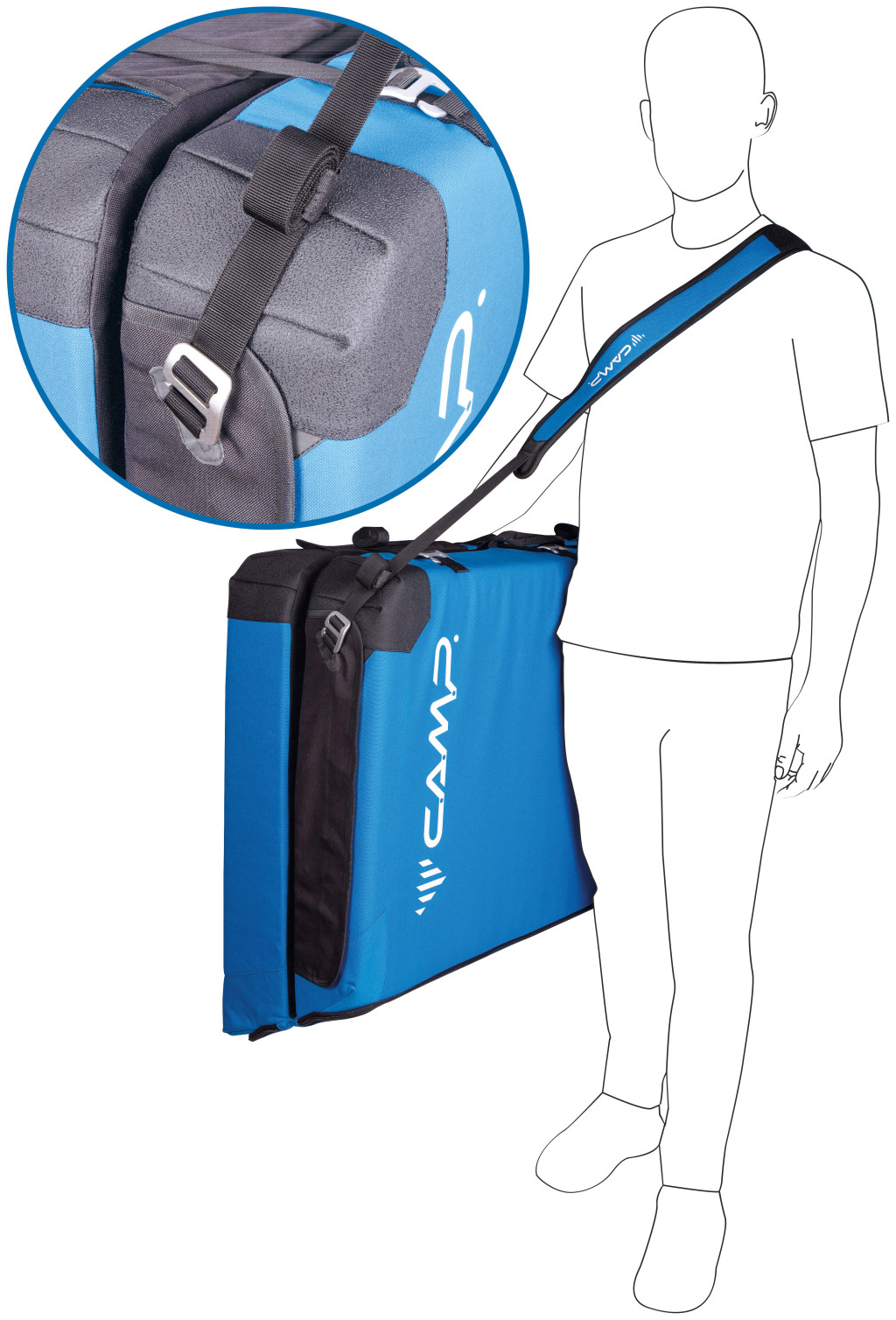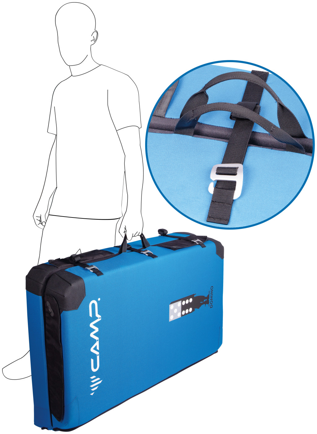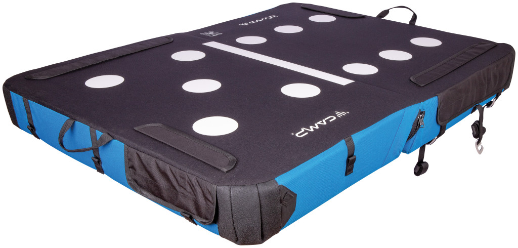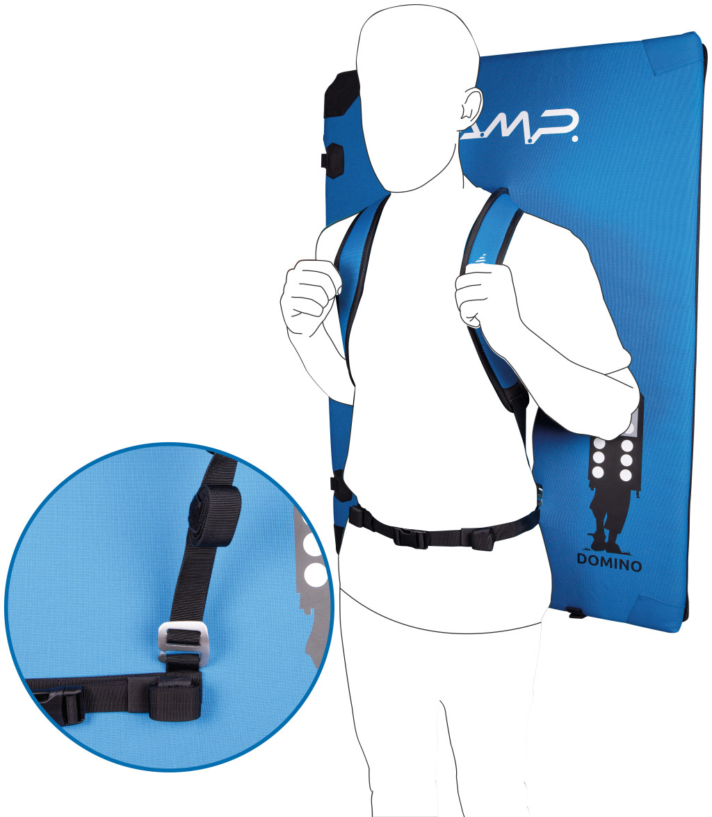 Az extra vastag (5,3 hüvelyk, 5 több sűrűségű rétegből álló) átlós hajtású bélés szilárd, egyenletes landolást biztosít egyenetlen terepen. A strapabíró anyag és a sarkokon és a pántokon található Hypalon® megerősítések garantálják a szilárdságot, megakadályozzák a szakadást és korlátozzák a nyúlást pontosan azokon a helyeken, ahol más betétek hajlamosak felmondani a szolgálatot. Illessz össze annyi Domino lapot, amennyihez csak hozzáférsz, hogy nagy landolási területet kapj, amely a betéteken lévő pöttyökkel összehangolva egyetlen szilárd egységként működik. A pöttyök egyben figyelemfelkeltő technikai megoldásként is szolgálnak, hogy kiemeljék az optimális landolási zónát. Az oldalsó pántok kihúzhatók, és oldalra csatlakoztathatók, így a Domino kanapévá alakítható a luxus pihenéshez. A vállpántok modulárisak, és lehetővé teszik, hogy a betétet hátizsákként (akár rögzítési pontokkal is rendelkezik két betét egymáshoz rögzítéséhez a megközelítéshez), egy vállon, mint egy oldaltáska, vagy bőröndként is hordd.