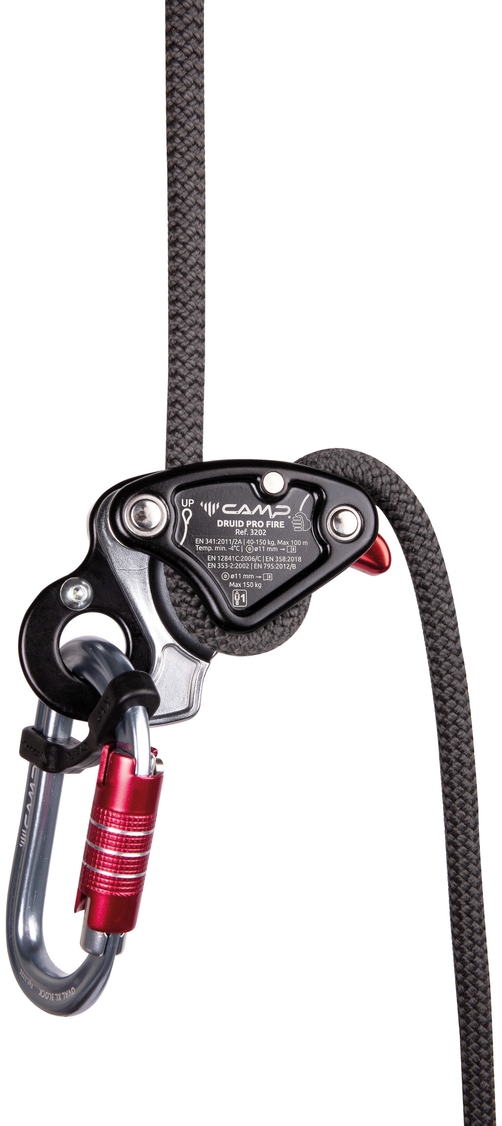 Több tanúsítvány a széleskörű felhasználáshoz: EN 341/2A vészhelyzeti evakuálási eszköz, EN 12841/C kötéllel történő ereszkedőeszköz, EN 353-2 zuhanásgátló, EN 358 munkapozicionáló kantár, EN 795/B rögzítőeszköz.