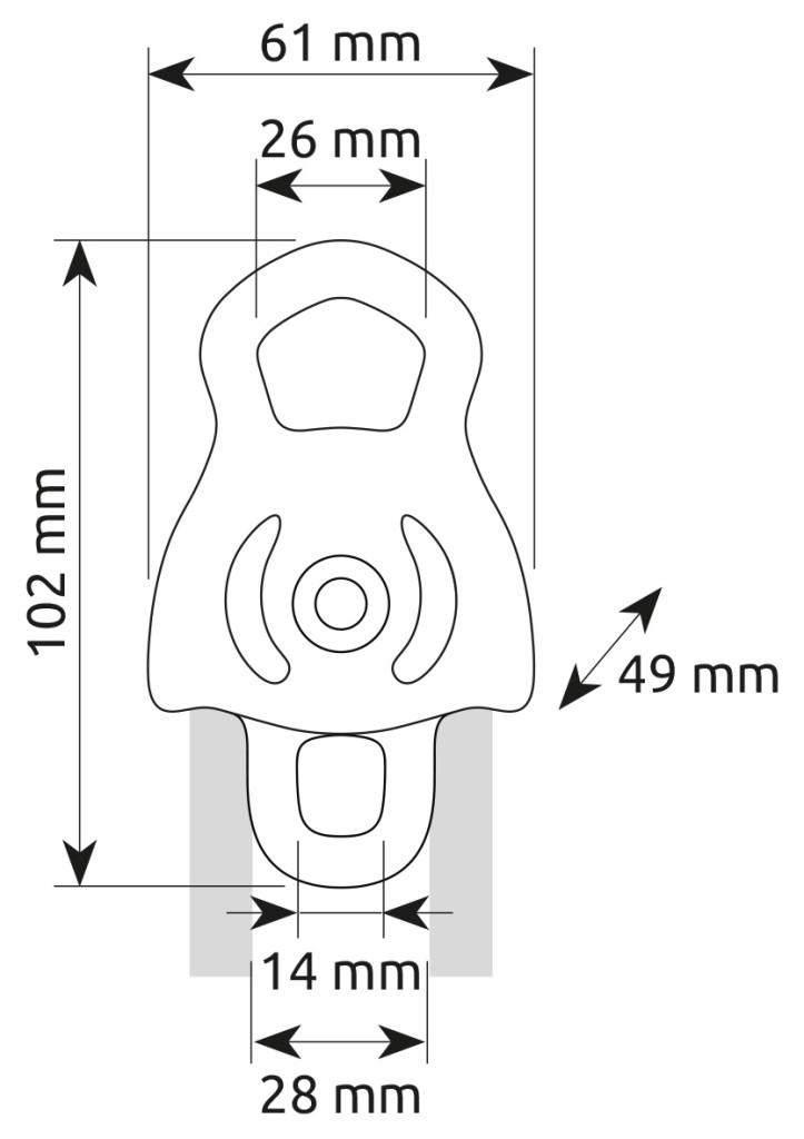 Kompakt dupla csiga rögzítőrendszerekhez. A fő bekötési pont két karabinert tartalmaz, a nyak pedig alsó bekötési ponttal rendelkezik a rögzítőrendszer alkatrészeinek összekapcsolásához. Legfeljebb 13 mm-es kötelekkel használható. Prusik láncszemként az önzáró csomó mindkét kerék mindkét oldalára felszerelhető. Az önkenő sárgaréz perselyek elegendőek könnyű, alacsony sebességű alkalmazásokhoz. Hatékonyság: 80%. Alumíniumötvözet test és kerekek, rozsdamentes acél tengely.