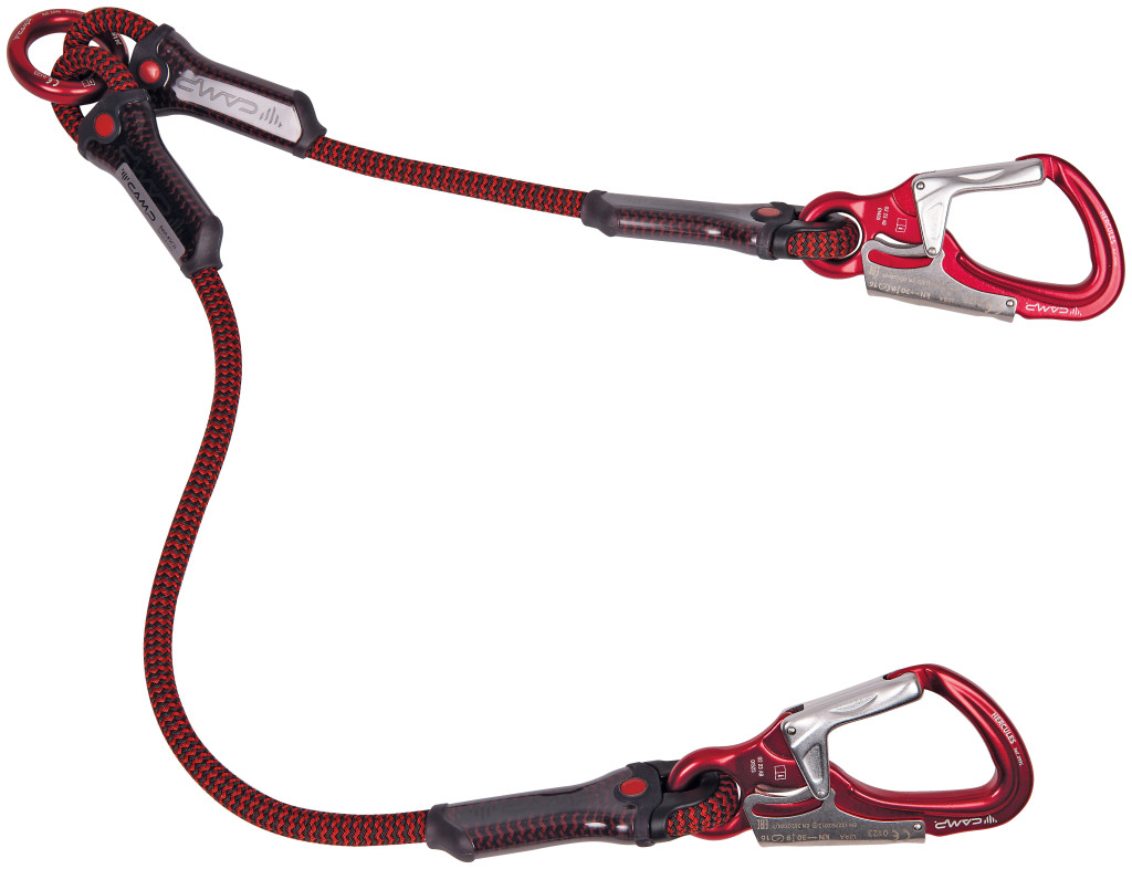 A kötélhurkok és varrások védőrendszere hihetetlenül kompakt és robusztus; a karabiner elfordulásgátló gumival van ellátva.