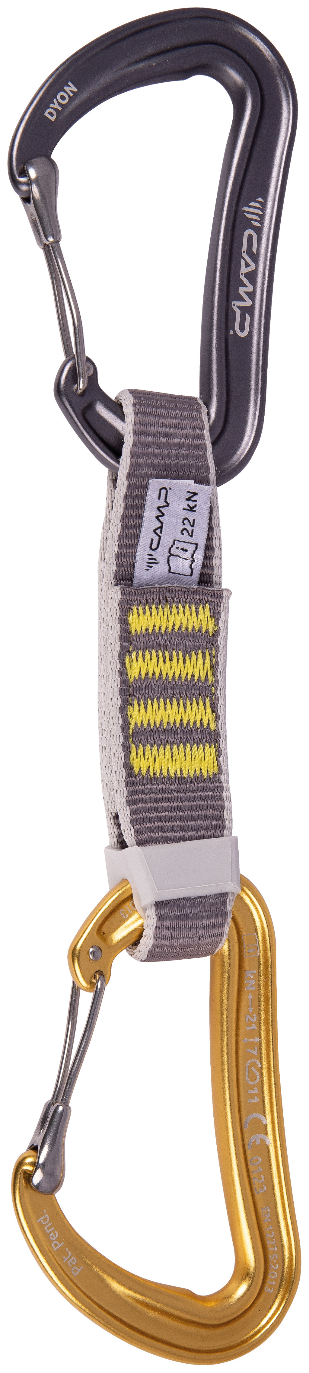 A Dyon Express KS egy etalon, amely a csúcskategóriás Dyon karabélyainkat használja a szuper sima csípés és tisztítás érdekében. A Dyon egy kétrészes zárat használ, amely ötvözi a sima drótkapocs működésének előnyeit a kulcsos zárral. Ez az egyedülálló kombináció magas szintű teljesítményt és biztonságot biztosít. A gerinc ívelt I-Beam szerkezete minimális súlyt tart, miközben nagyfokú merevséget és hihetetlen 11 kN nyitott zárószilárdságot biztosít. A SphereLock zár a hagyományos kulcsos zárrendszer továbbfejlesztése, még letisztultabb orrprofillal. A Dyon Express KS a legkifinomultabb, változó szélességű hevederrel ellátott kutyacsontunkat is használja, amely megkönnyíti a megfogást sportpályák kivetítésekor, valamint a Karstop Evo karabiner rögzítőt a kötél végén. 12 és 18 cm-es hosszúságban kapható.