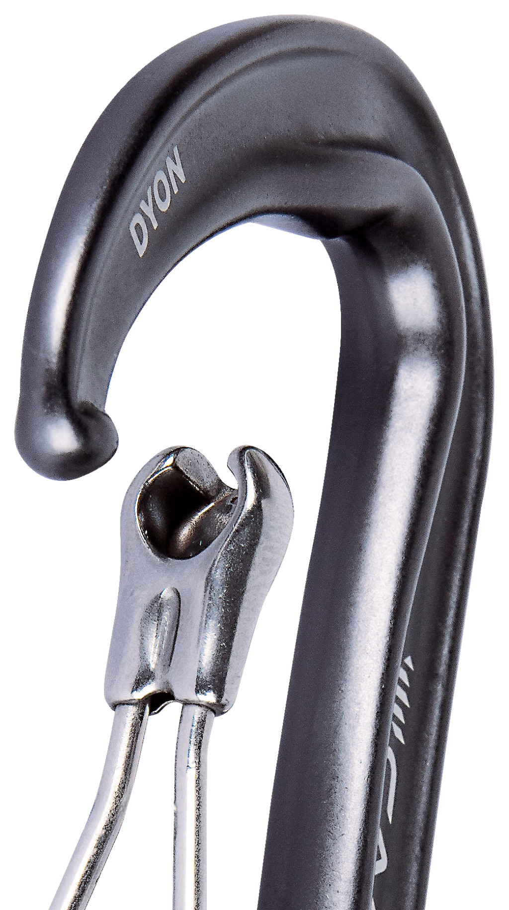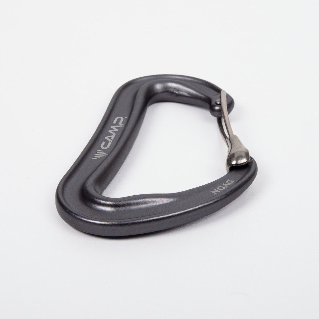 A karabinerek fejlődésének újabb lépéseként a Dyon kétrészes zárat használ, amely ötvözi a sima drótkapocs működésének előnyeit a kulcsos zárral. Ez az egyedülálló kombináció magas szintű teljesítményt és biztonságot nyújt. A gerinc ívelt I-gerenda szerkezete minimálisra csökkenti a súlyt, miközben nagyfokú merevséget és hihetetlen, 11 kN-os nyitott kapuszilárdságot biztosít. A SphereLock zár minimalizálja a kapu és az orr közötti játékot a fokozott biztonság és teljesítmény érdekében. 8 színben kapható, hogy illeszkedjen a legnépszerűbb bütyökszínekhez.