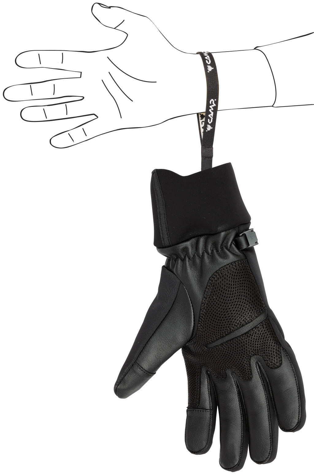 • Alacsony profilú csatok a kesztyűk összecsatolásához