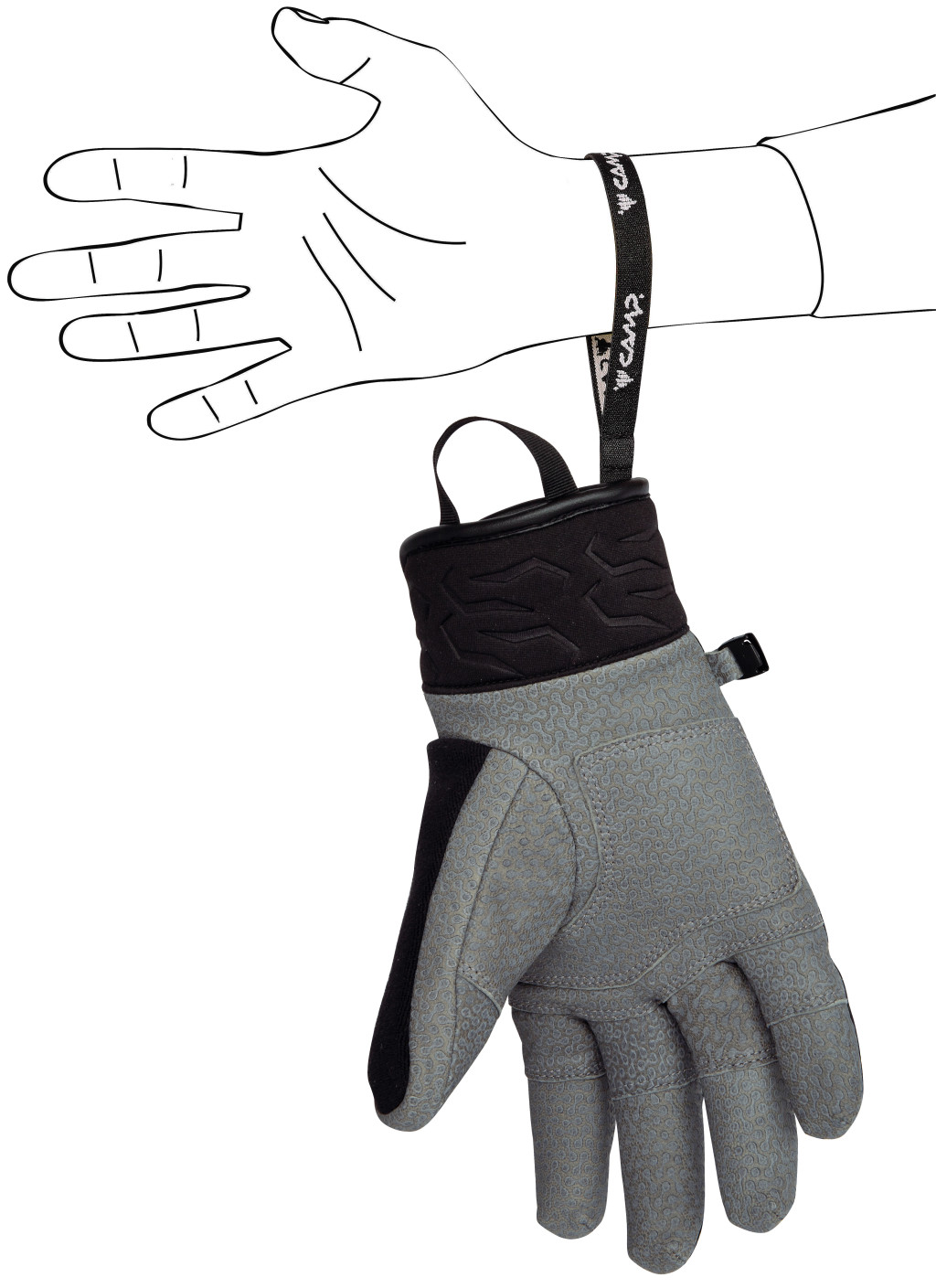 • Alacsony profilú csatok a kesztyűk összecsatolásához