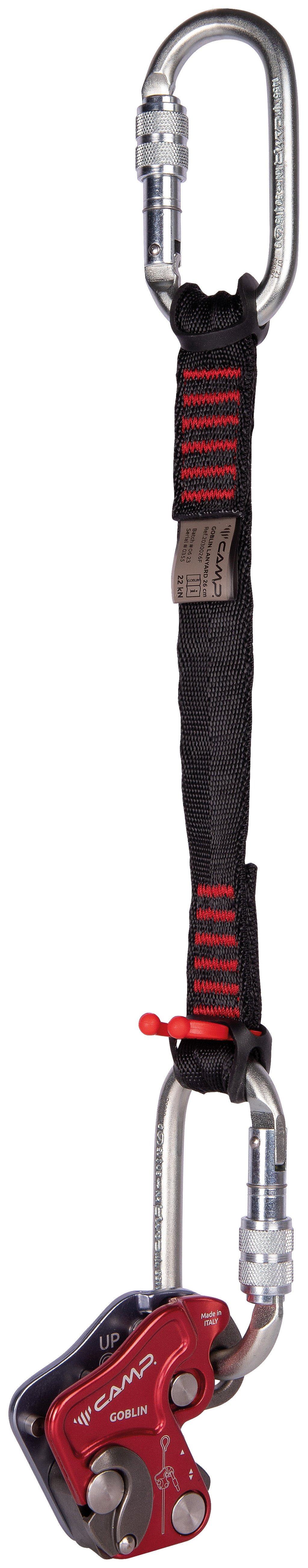 Goblin zuhanásgátló Goblin kantárral és két acél karabinerrel (nincsenek összeszerelve) szállítva.
