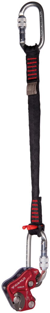 Goblin zuhanásgátló Goblin kantárral és két acél karabinerrel (nincsenek összeszerelve) szállítva.