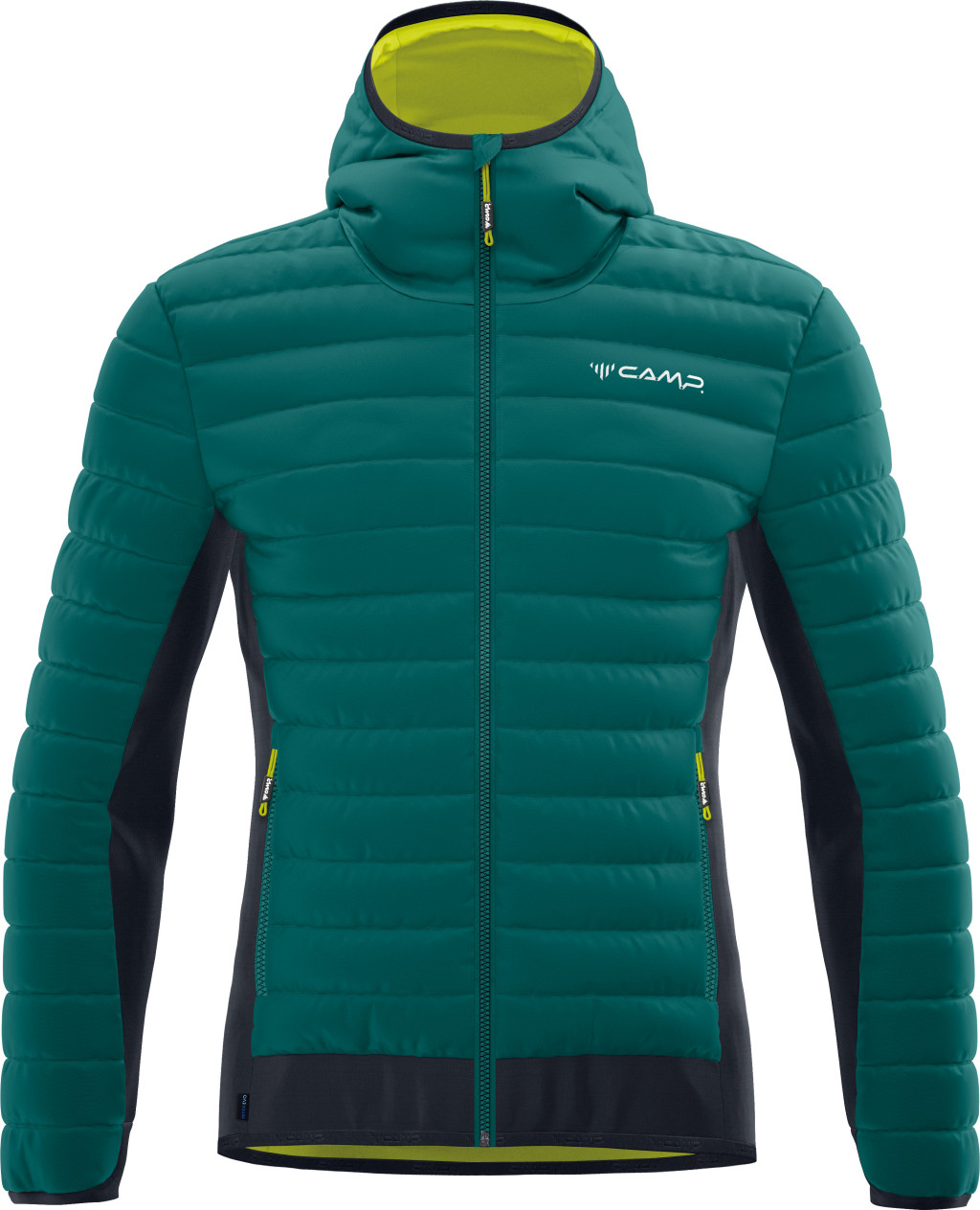A differenciált konstrukció és szigetelés jellemzi a Hybrid Jacket-et, amely hatékonyan ötvözi a szigetelt és a softshell kabát előnyeit. A szigetelt részek jó hőszigetelést biztosítanak, míg a rugalmas anyagból készült részek a mozgásszabadságot és a lélegzőképességet biztosítják. A hőteljesítményt a törzs differenciált szigetelése és a FlexTex 2.0 anyag fokozza. Könnyű és kompakt, a Hybrid Jacket egy sokoldalú kabát, amelyet kifejezetten aktív tevékenységekre terveztek. Használható önálló rétegként a szigetelt kapucnival, vagy középső rétegként a Slim Fit szabásának köszönhetően.