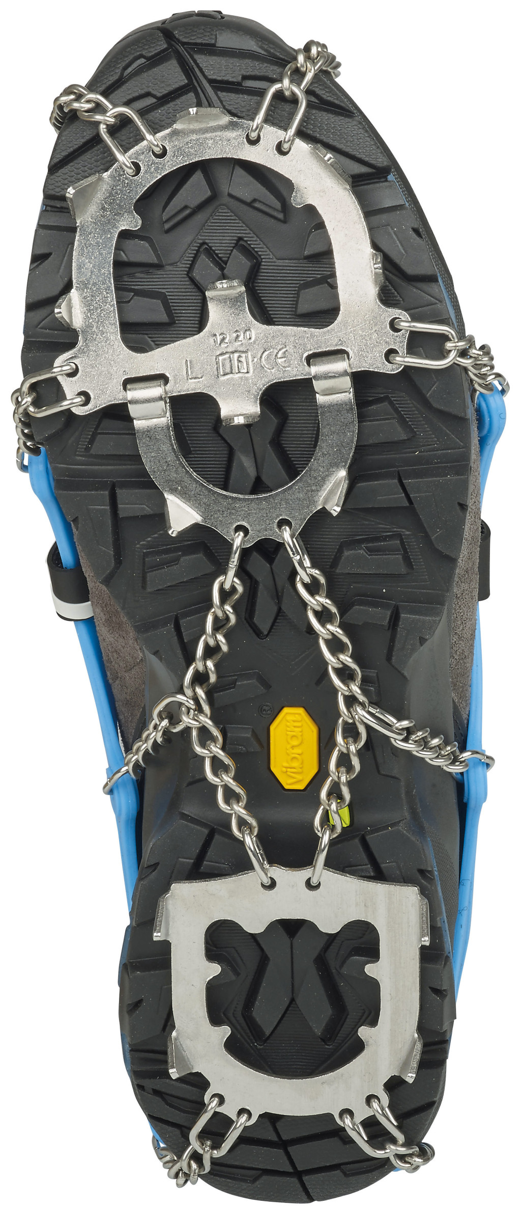 Ahogy a neve is sugallja, az Ice Master Evo a népszerű és megbízható Ice Master továbbfejlesztett változata. A legigényesebb felhasználók számára készült, 13 rozsdamentes acél tüskével, amelyek kiváló minőségű rozsdamentes acél láncokkal vannak összekötve a kivételes szilárdság és tartósság érdekében. Az elasztomer kötésrendszer gyorsan és egyszerűen fel- és levehető, a plusz pánt pedig különösen stabillá teszi a cipőhöz való rögzítést. FIGYELMEZTETÉS: technikai terepen az Ice Master Evo nem helyettesíti a hágóvas használatát.