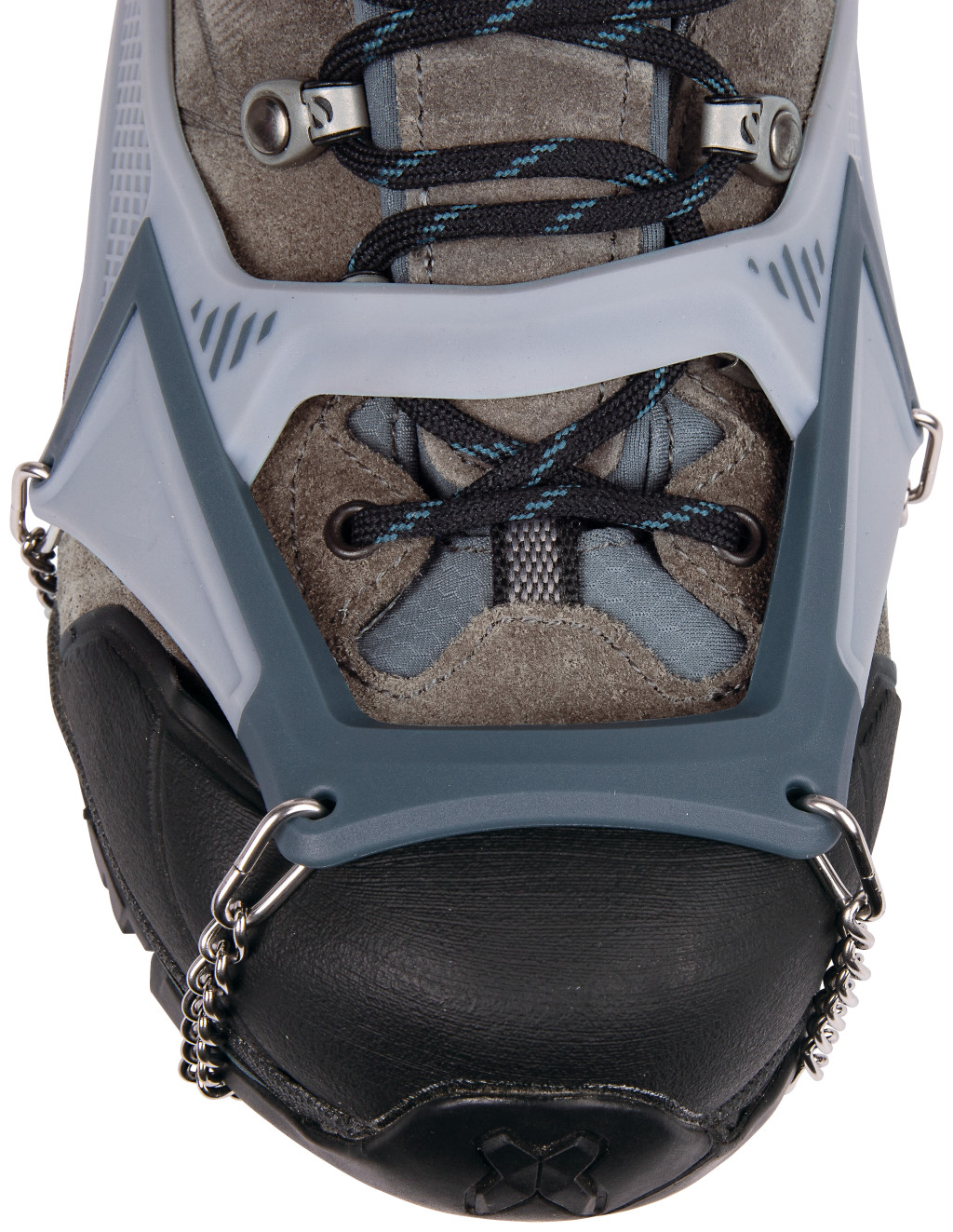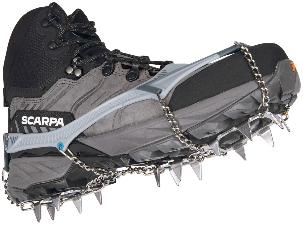 Az Ice Master Pro egy új, kétkomponensű kötésrendszert ötvöz egy merevebb tüskekialakítással, amely kevesebb láncfémet használ a legmagasabb teljesítményszint érdekében, miközben a súlyt is minimálisra csökkenti. A 3D-s kétkomponensű kötésrendszer puha és rugalmas a fő szerkezethez, és precíz helyeken merev betétekkel rendelkezik a jobb stabilitás és a biztonságosabb illeszkedés érdekében. A tüskék kevesebb acélt használnak a súly minimalizálása érdekében, és nagyobb merevséget biztosítanak a tüskéknek a biztosabb talptartás érdekében. Az elülső tüskék dupla illesztésűek, hogy alkalmazkodjanak a cipő és a terep hajlékonyságához. 16 db 15 mm-es rozsdamentes acél tüske van elosztva a tapadás, az oldalirányú tapadás és a fékezés maximalizálása érdekében. A rozsdamentes acél láncok és láncszemek minimalizáltak a súlycsökkentés elősegítése érdekében. A hordtáska funkcionális és kompakt. Védi a tüskéket és megakadályozza, hogy más felszereléseket átszúrjanak. FIGYELMEZTETÉS: technikai terepen az Ice Master Pro nem helyettesíti a hágóvas használatát.