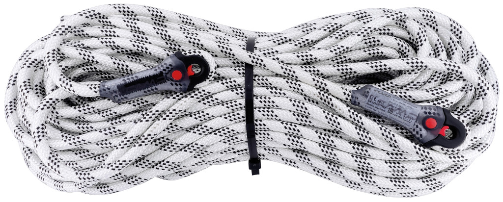 11 mm-es irídium kötél, méretre vágva, fix hurkokkal és mindkét végén 22 kN teherbírású varrással.