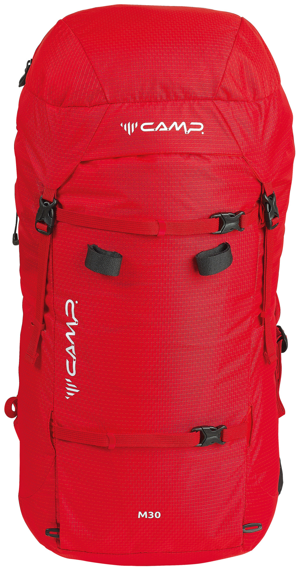 A 30 literes méret nagyszerű egynapos kirándulásokhoz a vadonban, helyet hagyva a legszükségesebb dolgoknak, ugyanakkor csökkentve a felesleges kapacitás súlyát. Az M30 számos, a CAMP hátizsákok kínálatában megtalálható egyedi funkcióval rendelkezik, mint például a teljes hátsó ajtós panel, amely lehetővé teszi a hátizsák tartalmához való hozzáférést anélkül, hogy mindent le kellene venni a tetején, mielőtt hozzáférnénk az alsó felszereléshez. A kényelmet az XAir szellőző hátrész biztosítja, 3 mm-es alumínium drótvázzal és lélegző, ergonomikus vállpántokkal. A párnázott deréköv levehető a technikai tevékenységekhez. Egy cipzáras zsebbel és egy felszereléstartó hurokkal rendelkezik. Az innovatív Balance System ugyanazt a két pántot használja a vállak tetején, hogy egyszerre állítsa be, nyomja össze és stabilizálja a terhet a hátizsák aljáról húzva a felülről. A levehető fedél tetején egy nagy fő rekesz, alul pedig egy kisebb rekesz található az értéktárgyak számára. A fedél eltávolításakor egy védőhuzat húzható ki, hogy letakarja a hátizsák tetejét. További technikai jellemzők közé tartozik két jégcsákány-tartó levehető rugalmas zsinórokkal felül és fejre zárható rendszerrel alul, megfordítható síléctartó pántok, amelyek snowboard hordozására is használhatók, vagy használaton kívül elrejthetők, külső sisaktartó rendszer, amely használaton kívül elrejthető, hidratáló tömlő kompatibilitás, valamint nagy, rugalmas cipzáras zsebek a fő rekesz belsejében a további rendszerezés érdekében.