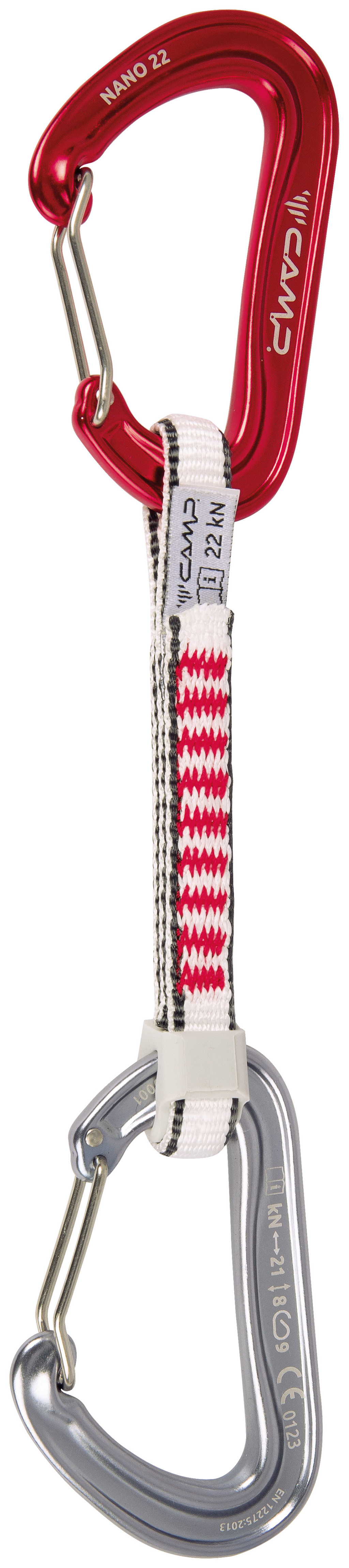 Remek vonzerő a többlépcsős sportokhoz és az alpesi sziklamászáshoz. A Nano 22 kompakt mérete különösen a felszereléstartó füleknél észrevehető, ahol kevesebb helyet foglalnak el, mint a hagyományos karabélyok, így könnyebben rögzíthetők és levehetők az éles végén. A forma és a nyílás mégis lehetővé teszi a normál csattanást és a szegecselt csomók használatát -- két nagyszerű teszt annak megállapítására, hogy mikor túl kicsi egy karabiner. A Dyneema® kutyacsont könnyű, erős és különösen biztonságos a kötél végén található Karstop Evo karabinerrögzítőnek köszönhetően, amely megakadályozza a karabiner elmozdulását. 12 és 18 cm-es hosszúságban kapható.