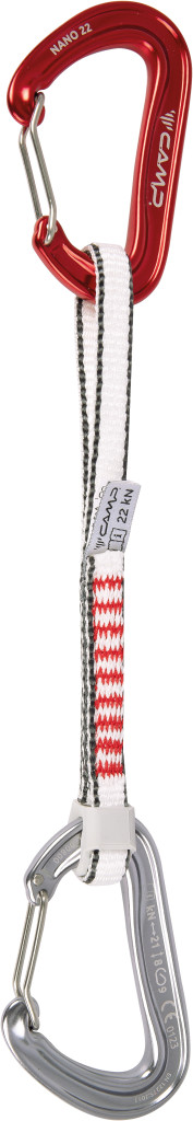 Remek vonzerő a többlépcsős sportokhoz és az alpesi sziklamászáshoz. A Nano 22 kompakt mérete különösen a felszereléstartó füleknél észrevehető, ahol kevesebb helyet foglalnak el, mint a hagyományos karabélyok, így könnyebben rögzíthetők és levehetők az éles végén. A forma és a nyílás mégis lehetővé teszi a normál csattanást és a szegecselt csomók használatát -- két nagyszerű teszt annak megállapítására, hogy mikor túl kicsi egy karabiner. A Dyneema® kutyacsont könnyű, erős és különösen biztonságos a kötél végén található Karstop Evo karabinerrögzítőnek köszönhetően, amely megakadályozza a karabiner elmozdulását. 12 és 18 cm-es hosszúságban kapható.