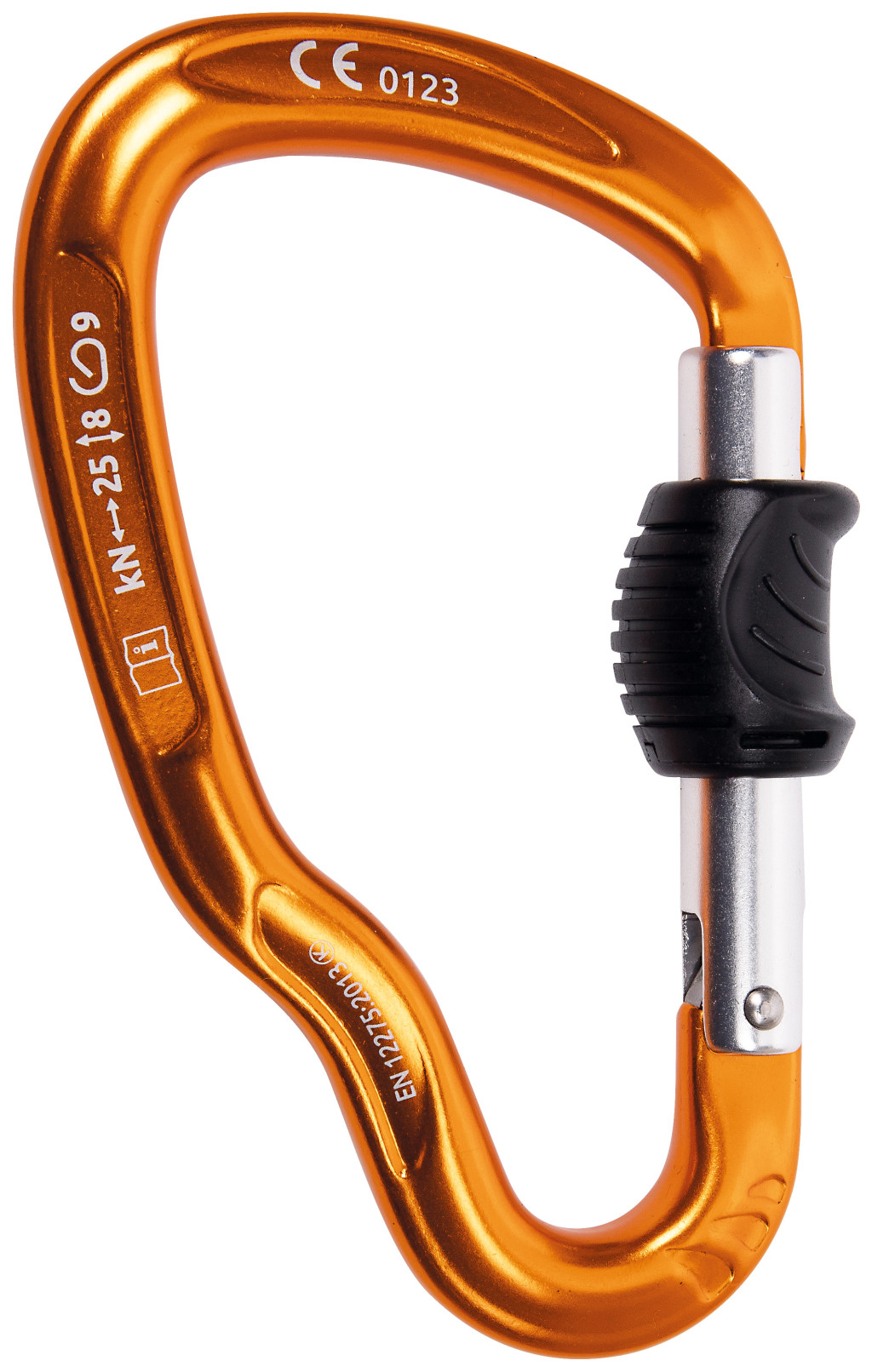 Teljes méretű via ferrata karabiner kulcsos zárral és automatikusan reteszelő kapuval, amely egy kézzel is könnyen kezelhető (csak csúsztassa el és húzza).