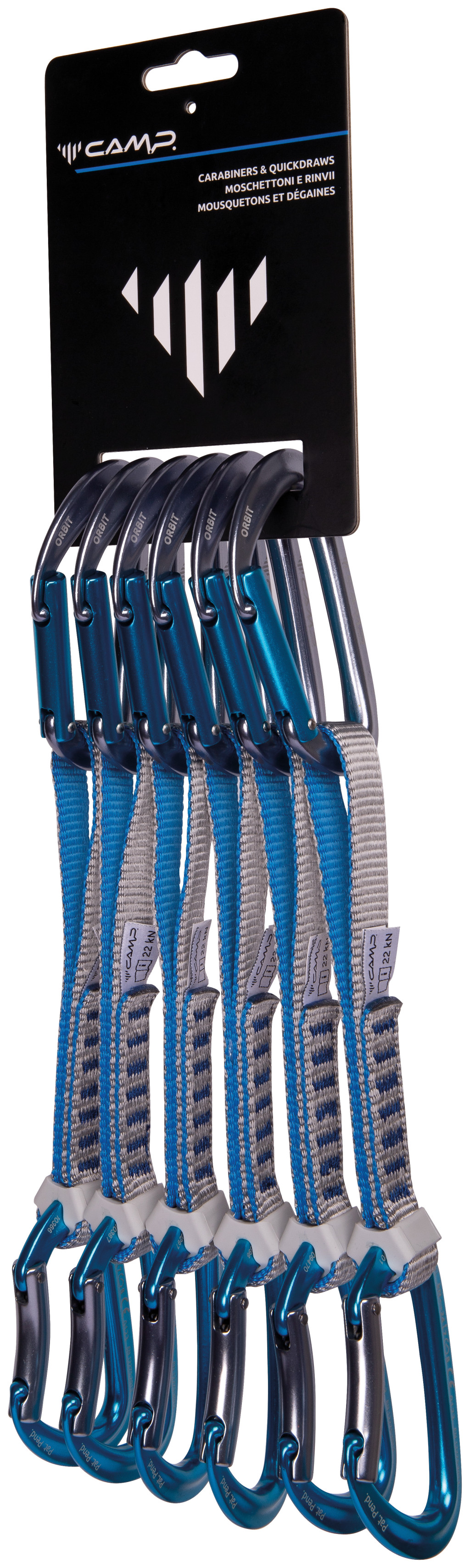Az Orbit karabiner egy masszív igásló a mindennapi mászáshoz, nagy tartóssággal, sima csattanással, könnyű konstrukcióval és a SphereLock zárral, amely a hagyományos kulcsos zárrendszer továbbfejlesztése még letisztultabb orrprofillal. A 16 mm-es nejlon kutyaszárak kötélvégén Karstop Evo karabinerrögzítő található. 12 és 18 cm-es hosszúságban kapható.
