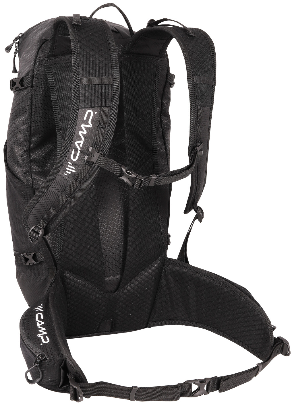 - A szellőzőrendszerbe integrált, párnázott csípőöv 2 rugalmas cipzáras zsebbel rendelkezik.