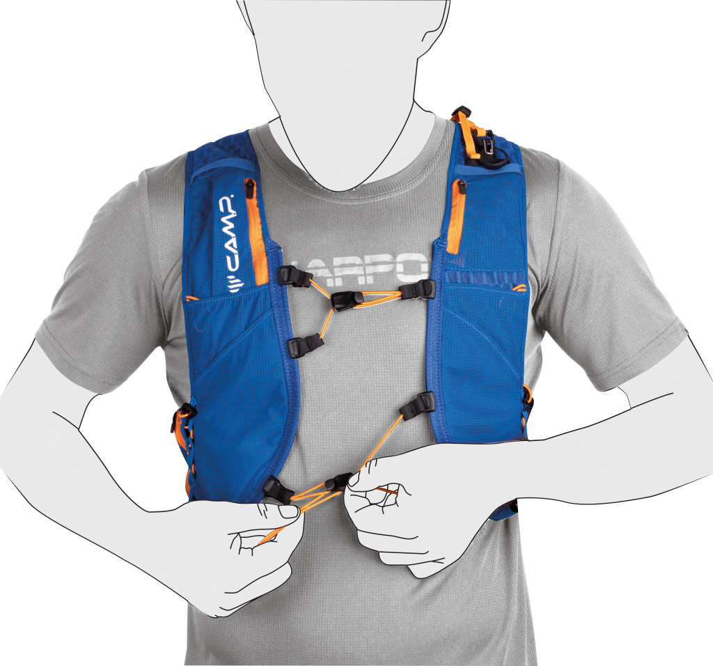 Még kompaktabb, könnyebb és áramvonalasabb, mint a Trail Force 5, a Trail Force 2 elfér benne az edzésekhez és a rövidebb versenyekhez szükséges összes nélkülözhetetlen dolog. Egy ilyen mellényháton a rendszerezés a kulcs. A számos zseb azonnali hozzáférést biztosít a folyadékhoz, az élelemhez és egyéb kiegészítőkhöz. A puha, szellőző, nedvességelvezető 3D háló puha szegélyanyaggal kombinálva mindenhol, ahol a mellény érintkezik a testtel, kiváló kényelmet biztosít még csupasz bőrön is. Az innovatív túrabot-hordozó rendszer a síhátizsákjaink X-Press síléchordozó rendszeréből származik. Lehetővé teszi a botok fel- és levételét a hátizsák megállítása vagy eltávolítása nélkül. A rendszer rugalmas zsinórokat használ, amelyek a botokhoz vannak rögzítve, majd egy karabinerrel (tartozék) rögzíthetők. Miután a botokat összecsatolták, a karabinert a hátizsák bal hátsó oldalán található hurokhoz csatolják, majd a botok végeit a jobb vállon található X-Press pánt rögzíti a nagyon biztonságos és gyors rögzítés érdekében.