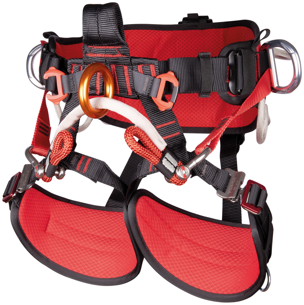 A deréköv és a combhurkok ergonomikus, hőformázott párnázásból készültek, hogy széleskörű szerkezeti tartást biztosítsanak, és optimálisan elhelyezett összekötő pántokkal vannak összekötve, amelyek precíz és kényelmes illeszkedést biztosítanak a hevederzetnek.