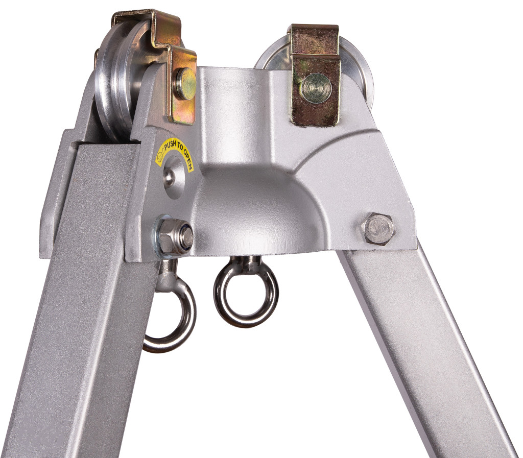 Zárt terekhez kifejlesztett háromlábú állvány a legösszetettebb hozzáférési és mentési műveletekhez, akár két személy egyidejű használatára, a TS 16415 szabványnak megfelelően.