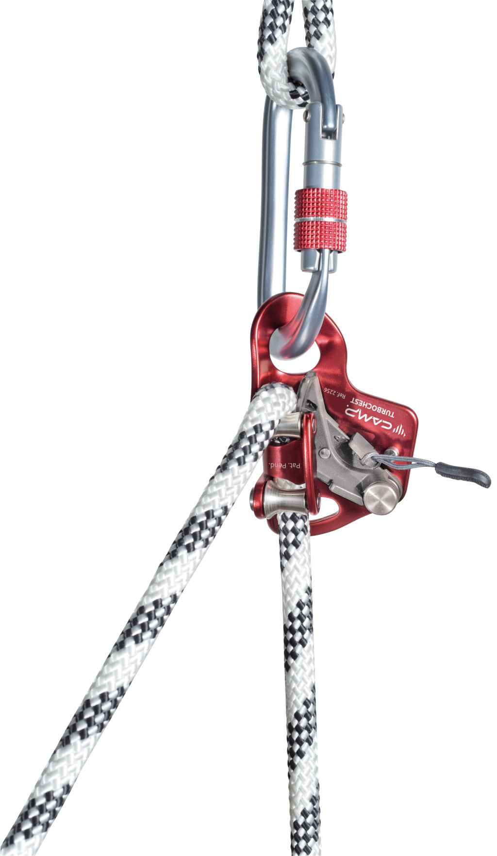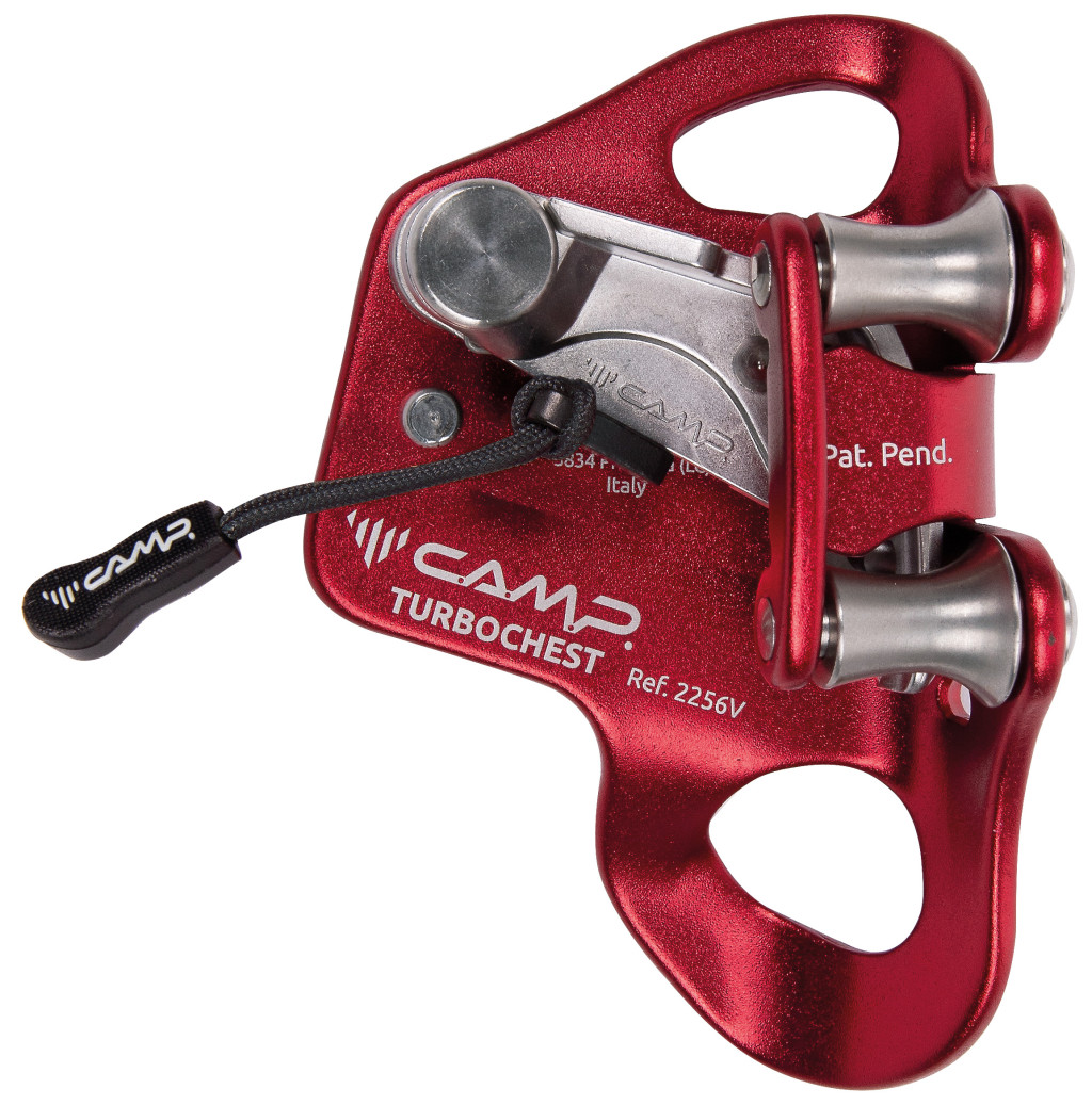 Forradalmian új mellkasi mászóeszköz, amely két görgővel rendelkezik a kötéllel való sima csatlakozás érdekében. Ez nemcsak a mászás hatékonyságát segíti elő azáltal, hogy sokkal simábbá teszi a felfelé siklást. Csökkenti az eszköz veszélyes kopását is, ahol a kötél hajlamos a hagyományos mászóeszköz testéhez dörzsölődni. A tökéletesen profilozott zár a kötelet a készülék testével és a görgőkkel egy vonalban tartja, megakadályozva, hogy a kötél kicsússzon a készülékből szűk ingázások és keresztezések során. Az öntisztító lyukak mind a testen, mind a bütyökön segítenek megakadályozni a szennyeződés és a szennyeződés lerakódását. A vastagabb testlemezek és a formázott csatlakozási pont csökkentik az eszköz kopását, amelyet az eszköz és a csatlakozó közötti elmozdulás okoz (különösen acél csatlakozókkal történő használat esetén). Ezáltal az eszköz használat közben is jobban illeszkedik a testhez. A nyitómechanizmus egyszerű és biztonságos, a könnyebb rögzítés érdekében a készülék nyitva is rögzíthető, a levehető húzózsinór pedig megkönnyíti a kesztyű viselése közbeni használatot.Alumíniumötvözetből készült test. MIM precíziós szinterezéssel készült rozsdamentes acél fogazott bütyök a kötél jobb tapadása, valamint a kopás és az oxidáció elleni nagyobb ellenállás érdekében.A saját fejlesztésű görgőknek köszönhetően a Turbochest rögzítő csigaként is használható könnyű, maximum 50 kg-os (110 font) terhelésű tárgyak szállításához. MEGJEGYZÉS: Ez a konfiguráció nem testek szállítására vagy rögzítésére szolgál.