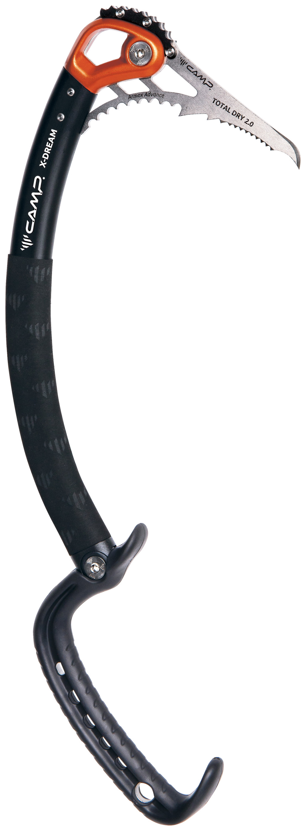 Az X-Dream Total Dry a szárazon evezés és a vegyes versenyek mércéje. Az új nyél az új Total Dry 2.0 csákánnyal kombinálva a legmagasabb szintű teljesítményt nyújtja a versenyző vegyes mászók számára. A csákány Armox Advance ballisztikus acélból készült, amelynek keménysége meghaladja a 60 HRC-t, és állandó 4 mm-es vastagsága a maximális szilárdság érdekében. Az agresszív kialakítást és a fogak konfigurációját szakértő versenyző vegyes mászók tervezték és finomhangolták. A Total Dry nyél megnyújtott kialakítású, hogy maximalizálja a belső teret, és a UIAA előírások által megengedett maximális elérési utat elérje. A standard X-Dream nyéllel ellentétben a Total Dry nyél az optimális helyzetben rögzíthető, és nem forgatható. Az eszköz továbbra is kompatibilis az X-Dream más alkatrészeivel, beleértve a standard nyéllel, a cserélhető csákánnyal és egyéb tartozékokkal.